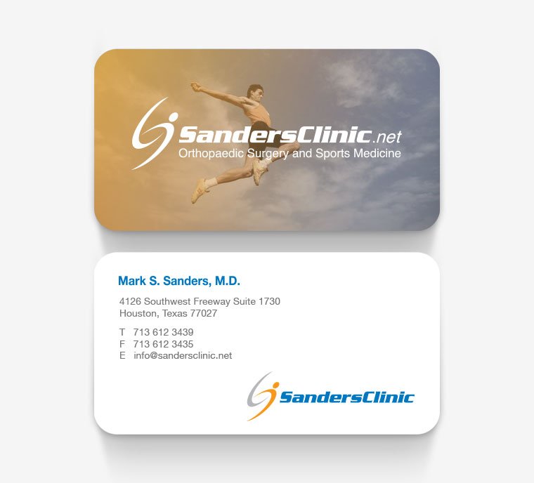For Sanders Clinic, a logo mark using abstracted letterforms to create a sense of movement and balance reinforces the clinic’s focus on orthopedic surgery and sports medicine.